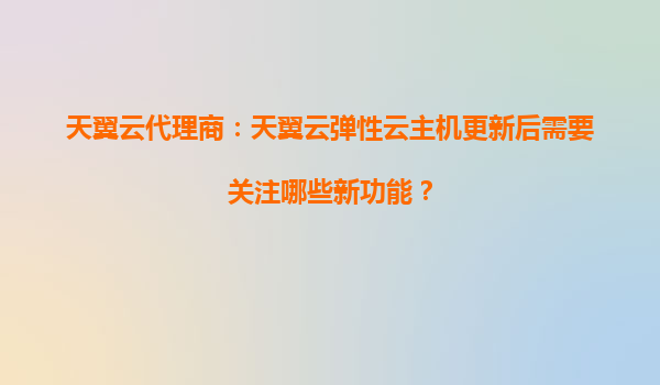 天翼云代理商:天翼云弹性云主机更新后需要关注哪些新功能? 一、天翼云弹性云主机的核心优势 作为中国电信旗下的云计算服务品牌,天翼云凭借央企背景和强大的基础设施能力,在云主机领域具备以下核心优势: 高可...