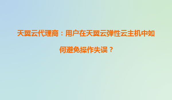 2025-08-19天翼云代理商指南:用户在天翼云弹性云主机中如何避免操作失误 引言 随着云计算技术的快速发展,越来越多的企业选择将业务迁移到云端。天翼云作为中国电信旗下的云计算服务品牌,凭借其强大的基础设施和稳...