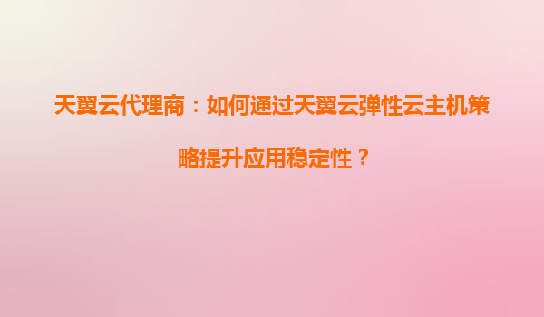 2025-08-18天翼云代理商:如何通过天翼云弹性云主机策略提升应用稳定性? 引言 在数字化转型的浪潮中,企业对于云计算的需求日益增长,而应用的稳定性成为业务连续性的关键保障。作为中国电信旗下...