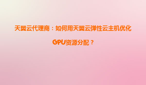 2025-08-18天翼云弹性云主机:GPU资源优化分配的最佳实践 弹性云主机与GPU资源的完美结合 天翼云弹性云主机凭借其灵活的资源配置能力,为用户提供了高效的GPU计算解决方案。通过弹性云主机,企业可以根据实际需求动态...
