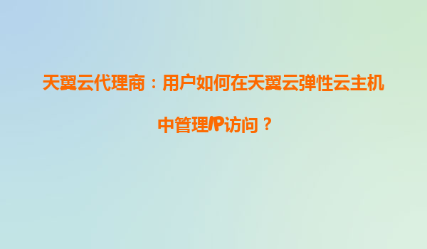 天翼云代理商:用户如何在天翼云弹性云主机中管理IP访问? 一、天翼云弹性云主机的核心优势 作为中国电信旗下的云计算服务品牌,天翼云凭借其独特的资源和技术优势,为企业用户提供高性能、高可靠的弹性云主机...