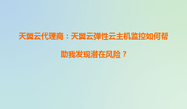 2025-08-18天翼云代理商:天翼云弹性云主机监控如何帮助我发现潜在风险? 一、天翼云弹性云主机的核心优势 天翼云作为中国电信旗下的云计算服务品牌,凭借其强大的基础设施和丰富的行业经验,为企业用户提供...