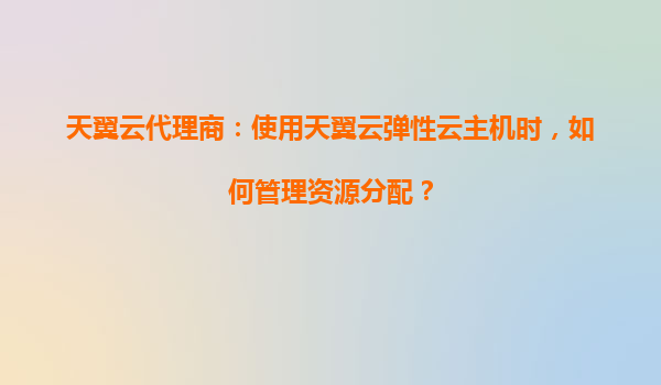 2025-08-16天翼云代理商:使用天翼云弹性云主机时,如何管理资源分配? 一、天翼云弹性云主机的核心优势 天翼云作为中国电信旗下的云计算服务品牌,凭借其在基础设施、网络资源和技术服务上的优势,为企业用...