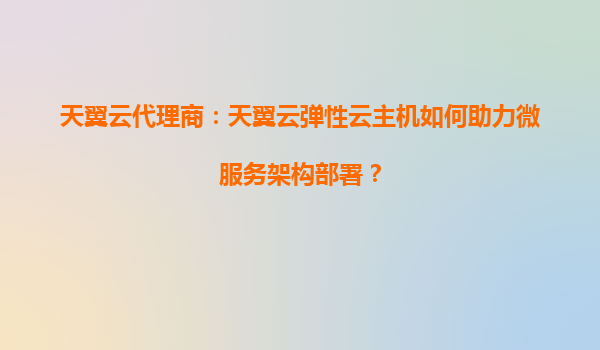 2025-08-16天翼云代理商:天翼云弹性云主机如何助力微服务架构部署? 一、微服务架构的核心需求与挑战 随着数字化转型加速,微服务架构因其松耦合、可独立扩展的特性成为企业应用开发的主流选择。然而,其分布式...