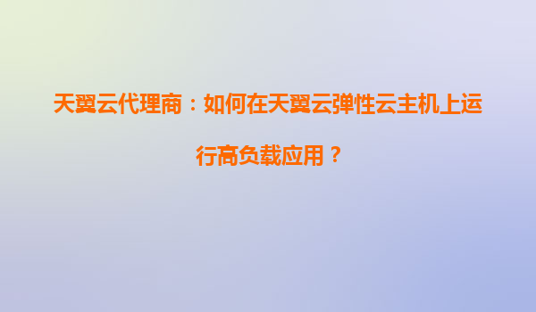 2025-08-16天翼云代理商:如何在天翼云弹性云主机上运行高负载应用? 引言 在数字化转型的浪潮中,云计算已经成为企业IT基础设施的核心。随着业务规模的扩大,许多企业面...
