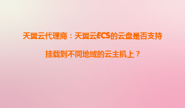 2025-11-01天翼云代理商解析:天翼云ECS云盘能否跨地域挂载至云主机? 一、天翼云ECS云盘跨地域挂载的核心问题 天翼云作为中国电信旗下的云计算服务商,其弹性计算服务(E...
