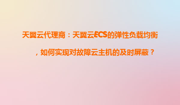 2025-11-01天翼云代理商:天翼云ECS弹性负载均衡如何实现对故障云主机的及时屏蔽 引言 随着云计算技术的快速发展,企业对云服务的可用性和稳定性提出了更高的要求。天翼云作为中国电信旗下的云计算服务品牌,凭借其强...