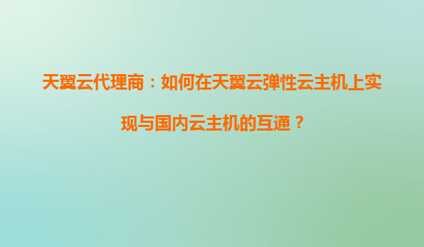 2025-11-01天翼云代理商:如何在天翼云弹性云主机上实现与国内云主机的互通? 引言:天翼云与国内云计算环境的融合需求 随着企业数字化转型加速,多云混合部署成为主流趋势。天翼云作为中国电信旗下云计算服务商,凭...