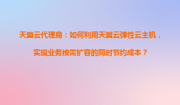 2025-11-01天翼云代理商:如何利用天翼云弹性云主机,实现业务按需扩容的同时节约成本? 前言:弹性云主机的价值与天翼云优势 在数字化转型浪潮中,企业对于IT基础设施的弹性、灵活性和成本效益提出了更高要求。天翼云弹...