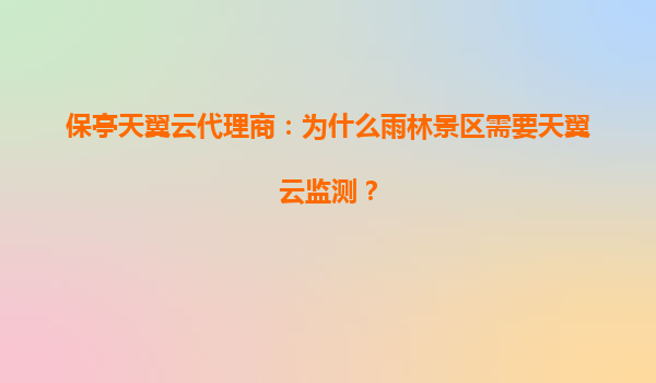 2025-08-04保亭天翼云代理商:为什么雨林景区需要天翼云监测? 一、雨林景区的生态保护与数字化需求 雨林景区作为重要的生态资源,其保护和管理面临诸多挑战,如气候监测、生物多样性保护、游客流量管理等。传统的监...