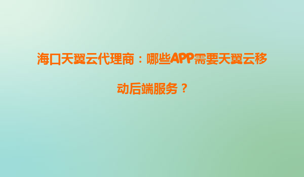 2025-07-28海口天翼云代理商:哪些APP需要天翼云移动后端服务? 一、天翼云移动后端服务的核心优势 天翼云作为中国电信旗下的云计算品牌,凭借强大的基础设施和技术能力,为移动应用开发者提供了高性能、高可用的后端...