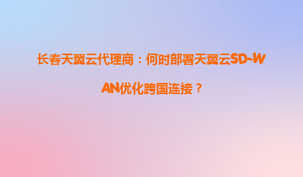 2025-07-27长春天翼云代理商:何时部署天翼云SD-WAN优化跨国连接? 一、天翼云的核心优势与SD-WAN技术价值 天翼云作为中国电信旗下的云计算服务品牌,依托覆盖广泛的网络基础设施和全球化资源布局,在跨国企业连...