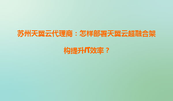2025-07-26苏州天翼云代理商:怎样部署天翼云超融合架构提升IT效率? 引言 随着数字化转型的加速,企业对IT基础设施的要求越来越高。传统的IT架构往往存在资源利用率低、运维复杂、扩展性差等问题。而超融合架构...