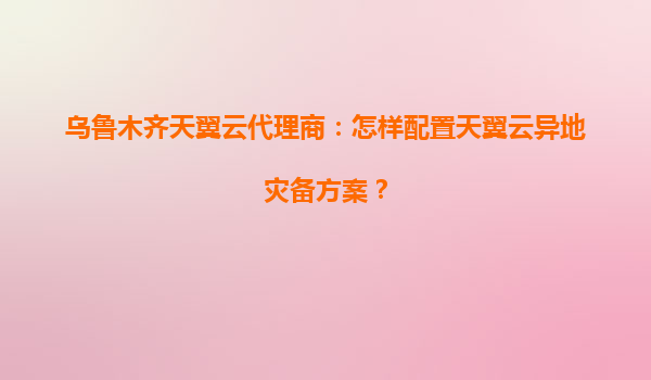 2025-07-23乌鲁木齐天翼云代理商:怎样配置天翼云异地灾备方案?一、天翼云异地灾备的核心价值与优势作为乌鲁木齐地区的天翼云官方代理商,我们基于中国电信强大的网络...