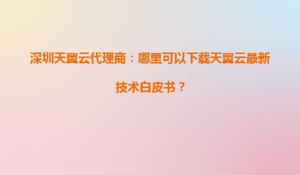 2025-07-22深圳天翼云代理商:哪里可以下载天翼云最新技术白皮书? 一、天翼云的核心优势 天翼云作为中国电信旗下的云计算品牌,凭借多年的技术积累和资源整合能力,在云计算领域占据重要地位。其核心优势主...