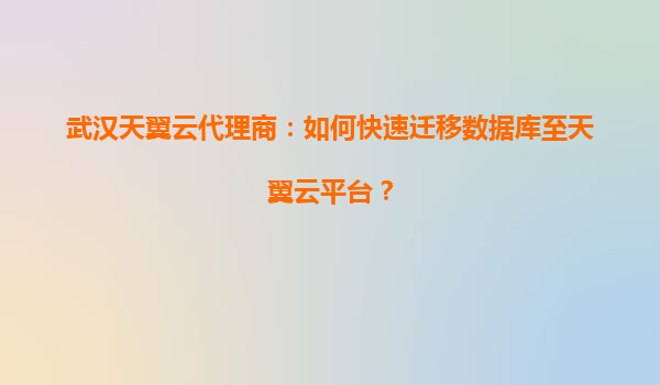 武汉天翼云代理商指南:如何快速迁移数据库至天翼云平台 引言:数字化转型中的数据库迁移需求 在数字化转型浪潮中,企业数据库迁移上云成为提升业务灵活性和降低运维成本的关键步骤。作为中国电信倾力打造...