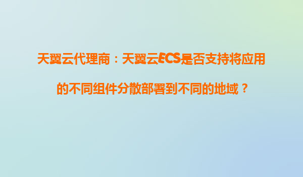2025-10-29天翼云代理商解析:天翼云ECS如何实现跨地域组件化部署 一、天翼云ECS的多地域部署能力 天翼云弹性计算服务(ECS)作为云计算核心产品,全面支持用户将应用程序的不同组...