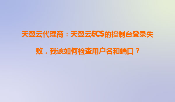 2025-10-29天翼云ECS控制台登录失败排查指南 一、理解问题背景:登录失败的可能原因 当天翼云代理商遇到ECS实例控制台登录失败时,通常涉及三个核心要素——连接协议配置、安全组规则设置以及登录凭证有效性。作...