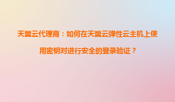 2025-10-28天翼云代理商指南:如何在天翼云弹性云主机上使用密钥对进行安全的登录验证 一、天翼云密钥对登录的优势与背景 天翼云作为中国电信旗下的云计算服务品牌,其弹性云主机(ECS)服务以高安全性和稳定性著称。相比...