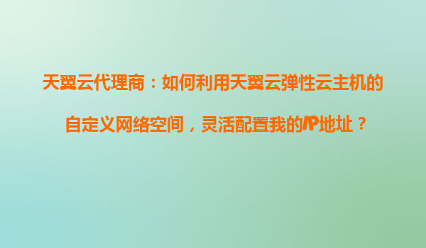 天翼云代理商指南:如何利用弹性云主机自定义网络空间灵活配置IP地址 一、天翼云弹性云主机简介 天翼云是中国电信旗下的云计算服务品牌,其弹性云主机(ECS)产品以高性能、高可靠性和灵活配...