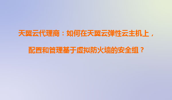 2025-10-28天翼云代理商指南:如何配置和管理基于虚拟防火墙的弹性云主机安全组 一、安全组与天翼云虚拟防火墙的核心价值 在天翼云弹性云主机(ECS)环境中,安全组作为虚拟防火墙...