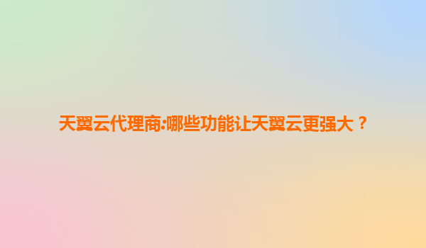 2025-07-13天翼云代理商解析:哪些功能让天翼云更强大? 一、引言 随着数字化转型加速,云计算成为企业IT基础设施的核心。作为中国电信旗下的云计算服务品牌,天翼云凭借其技术实力和资源优势,在市场中占据重...
