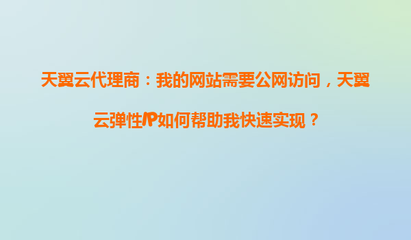 2025-10-27天翼云代理商:我的网站需要公网访问,天翼云弹性IP如何帮助我快速实现? 一、引言:公网访问的核心需求与弹性IP的价值 在数字化转型的浪潮中,企业网站或应用需要提供公网访问能力以满足用户随时...