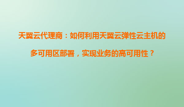 2025-10-27天翼云代理商:如何利用天翼云弹性云主机的多可用区部署,实现业务的高可用性? 一、天翼云多可用区部署的核心优势 天翼云作为中国电信旗下云计算服务品牌,其弹性云主机(ECS)的多可用区(Availabili...