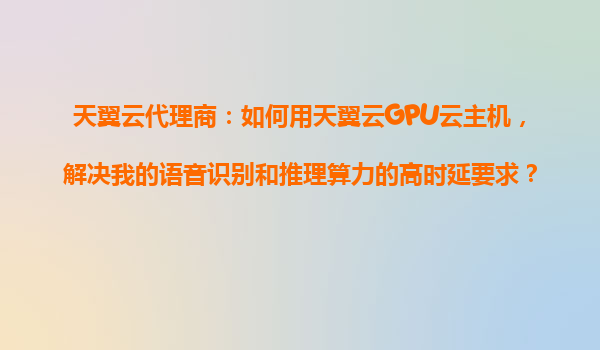 2025-10-27天翼云代理商:如何用天翼云GPU云主机解决语音识别与推理算力的高时延问题 一、高时延问题的挑战与GPU云主机的价值 在语音识别和AI推理场景中,算力响应速度直接影响用户体验和业务效率。传统本地服务器或...