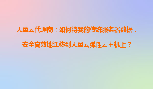 2025-10-28天翼云代理商指南:如何安全高效地将传统服务器数据迁移至天翼云弹性云主机 一、迁移前的准备与规划 1.数据评估与分类 在迁移前,需对传统服务器中的数据进行全面评估,包括数据...