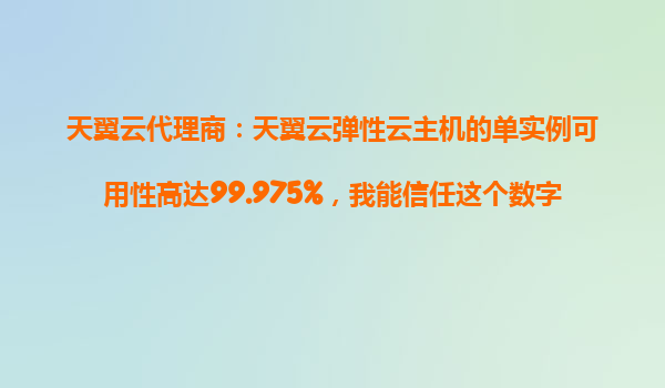 天翼云代理商:天翼云弹性云主机的单实例可用性高达99.975%,我能信任这个数字吗? 在数字化转型的大潮中,企业对云计算的依赖程度越来越高。云服务的可用性直接关系到企业的业务连续性和用户体验。作为中国电...