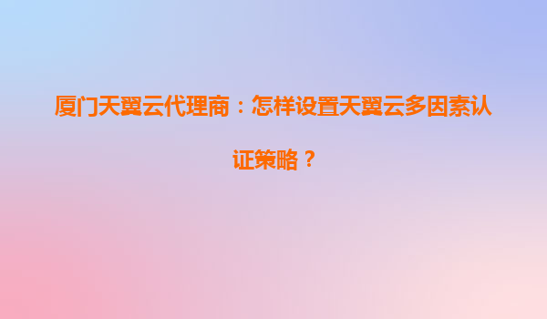 2025-07-06厦门天翼云代理商:如何设置天翼云多因素认证策略 引言 随着云计算技术的快速发展,企业数据安全的重要性日益凸显。天翼云作为中国电信旗下的云计算服务品牌,凭借其强大的安全性和稳定性,成为众多企...