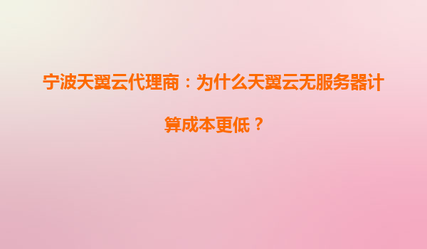 2025-07-06宁波天翼云代理商:为什么天翼云无服务器计算成本更低? 引言 随着云计算技术的快速发展,无服务器计算(Serverless)因其弹性伸缩、按需付费的特性,成为企业...