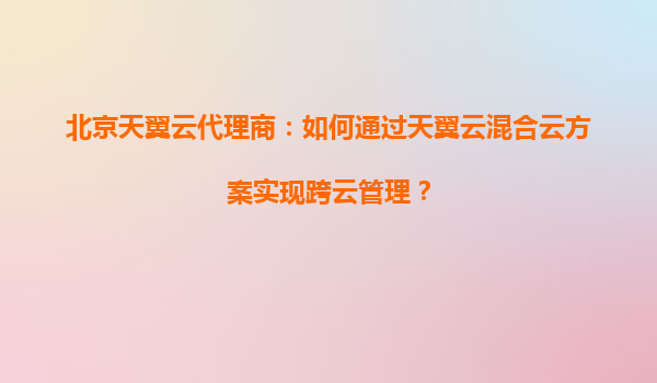 2025-07-05北京天翼云代理商:如何通过天翼云混合云方案实现跨云管理 混合云方案的核心价值 天翼云混合云方案为企业提供了灵活的资源部署模式,通过整合公有云与私有云的优势,实现业务负载的动态调配。其核心价值在...