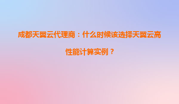 成都天翼云代理商:什么时候该选择天翼云高性能计算实例? 一、高性能计算实例的核心应用场景 天翼云高性能计算实例(HPC)专为计算密集型任务设计,适用于以下...