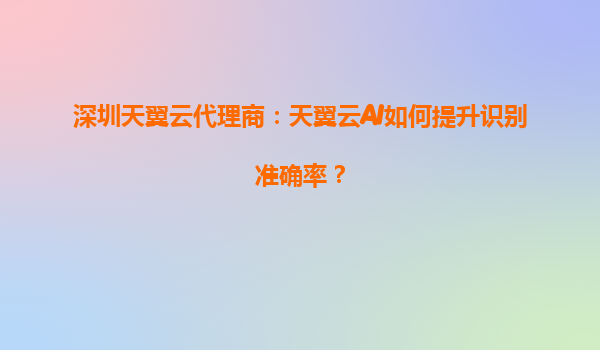 2025-07-01深圳天翼云代理商:天翼云AI如何提升识别准确率? 引言 在数字化转型的浪潮中,人工智能(AI)技术已成为企业提升效率、优化服务的关键工具。天翼云作为中国电...