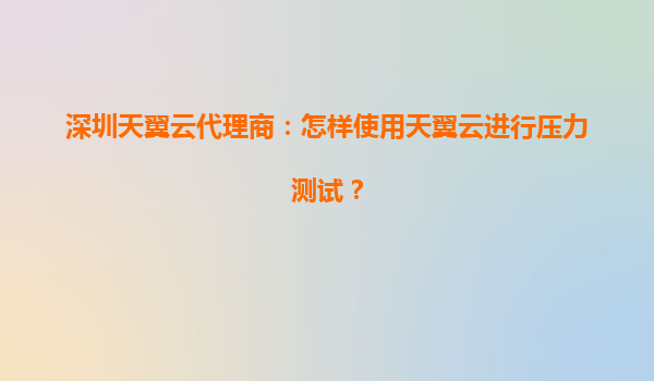 2025-07-01深圳天翼云代理商指南:如何高效利用天翼云进行压力测试 天翼云压力测试的核心价值 天翼云作为中国电信旗下的云计算服务品牌,凭借其高性能计算资源、弹性扩展能力和稳定的网络架构,成为企业压力测试的理...