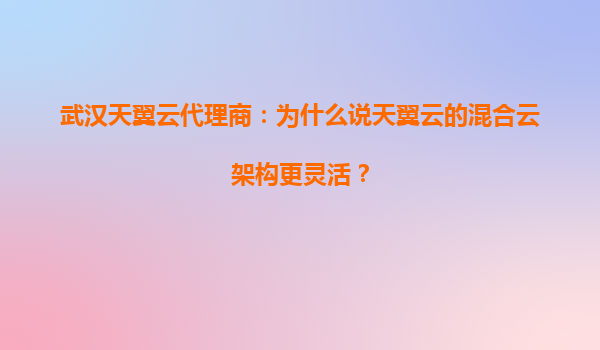 2025-06-20武汉天翼云代理商:为什么说天翼云的混合云架构更灵活? 在数字化转型浪潮中,企业IT架构面临资源弹性不足、数据安全挑战和成本控制难题。天翼云作为中国电信旗下云服务品牌,凭借其创新的混合云架构,...
