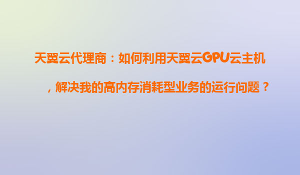 2025-10-24天翼云代理商:如何利用天翼云GPU云主机解决高内存消耗型业务运行问题 一、高内存消耗型业务的挑战 在数字化转型的浪潮中,许多企业依赖于高性能计算(HPC)、大数据分析、人工智能(AI)或实时渲染...