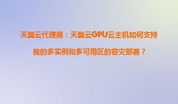 2025-10-24天翼云GPU云主机如何支持多实例和多可用区的容灾部署 一、天翼云GPU云主机的核心优势 天翼云作为中国电信旗下的云计算服务商,凭借其强大的基础设施和网络资源,为企业和开发者提供了高性能、高可靠的GPU云...
