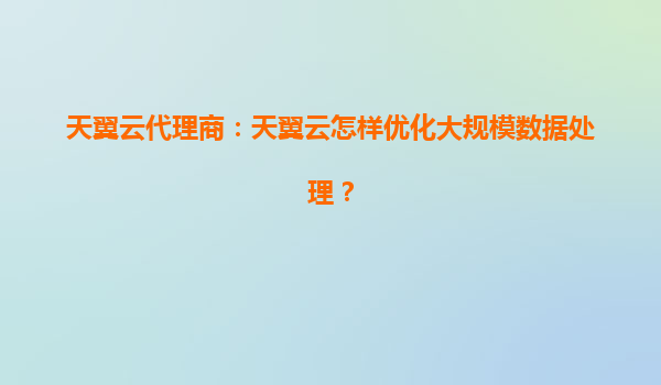 2025-06-14#天翼云代理商:优化大规模数据处理的综合解决方案 以下是根据您的要求撰写的专业分析文章,采用HTML格式输出: 天翼云代理商:优化大规模数据处理的综合解决方案 依托天翼云核心技...