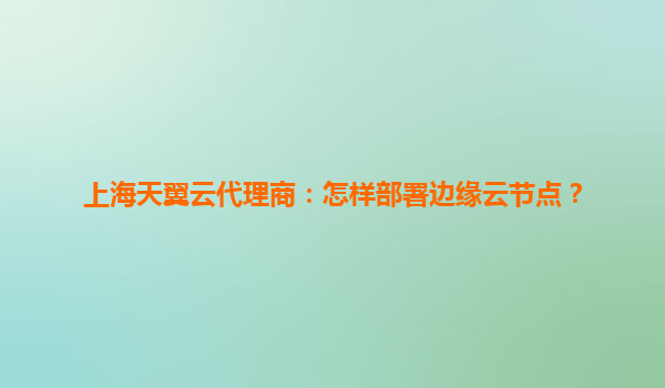 2025-06-09上海天翼云代理商:三步实现高效边缘云节点部署 边缘云节点的战略价值 在5G+IoT时代,边缘计算成为数字化转型的核心基础设施。作为上海天翼云认证代理商,我们深刻理解企业面临的数据延...