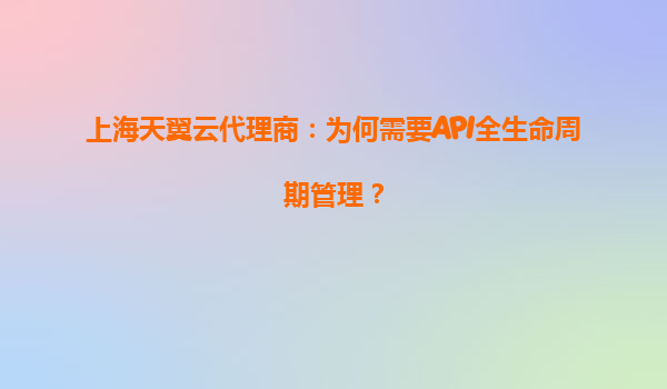 2025-06-09上海天翼云代理商:为何需要API全生命周期管理? 数字化浪潮下的API战略价值 在云计算与数字化转型加速落地的今天,API已成为连接业务、数据和服务的核心纽带。作为上海区域企业上云的重要合作伙伴,天翼云代理...