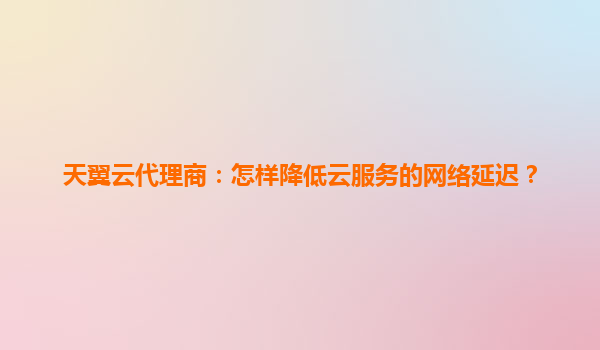 2025-06-06天翼云代理商指南:如何有效降低云服务网络延迟 网络延迟是影响云服务体验的关键指标,尤其对实时应用、在线交易和视频交互场景至关重要。作为天翼云代理商,深入理解降低延迟的技术策略不仅能...