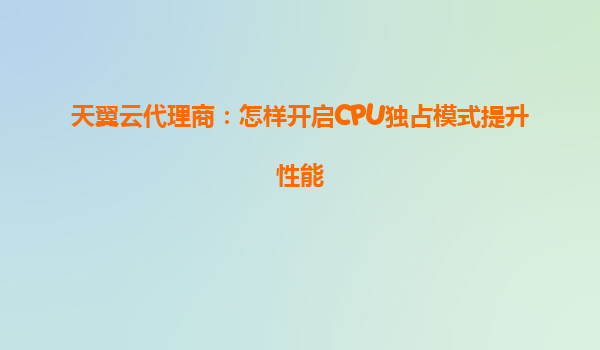 2025-05-28天翼云代理商指南:如何通过CPU独占模式提升云服务器性能 一、什么是CPU独占模式? CPU独占模式是一种通过将物理CPU核心资源完全分配给特定虚拟机实例的技术手段,确保该实例独享计算资源,...