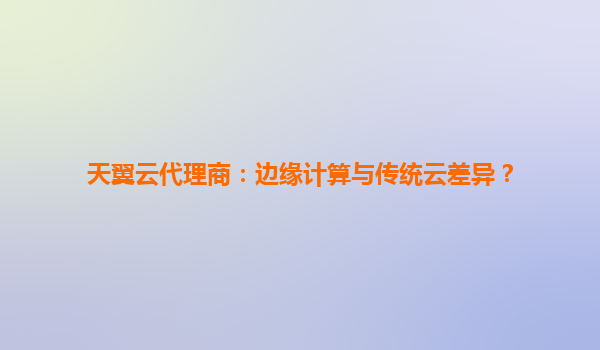 天翼云代理商视角:边缘计算与传统云计算的差异解析 一、边缘计算与传统云计算的核心差异 在数字化转型浪潮中,边缘计算与传统云计算形成互补架构,两者的差异主要体现在以下维度...