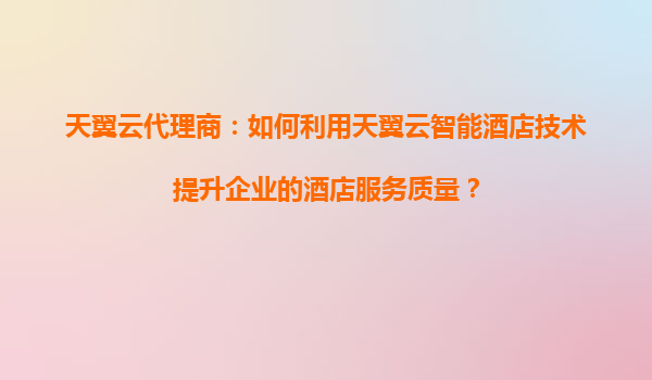 2025-05-19天翼云智能酒店技术:提升企业服务质量的数字化转型利器 一、智能化基础设施构建酒店服务新底座 天翼云通过弹性计算资源与分布式存储技术,为酒店行业打造高可用数字化基座。其云服务器EC...