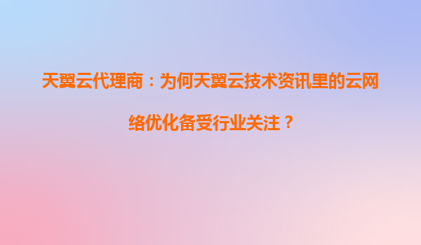 天翼云代理商:为何天翼云技术资讯里的云网络优化备受行业关注? 近年来,随着云计算技术的快速发展和企业数字化转型的深入,云网络优化逐渐成为行业热议的焦点。天翼云作为国内领先的云服务提供商,其技术资讯...