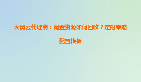 2025-05-14天翼云代理商如何高效回收闲置资源?定时策略配置模板解析 一、闲置资源管理的必要性 在云计算环境中,未及时释放的闲置资源会导致成本浪费和运维效率下降。天翼云...