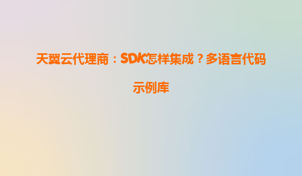 2025-05-14天翼云代理商SDK集成指南与多语言代码示例 一、天翼云与代理商的协同优势 1.1天翼云核心优势 安全可靠:通过等保三级认证的云基础设施 全栈服务:覆盖IaaS/Paa...
